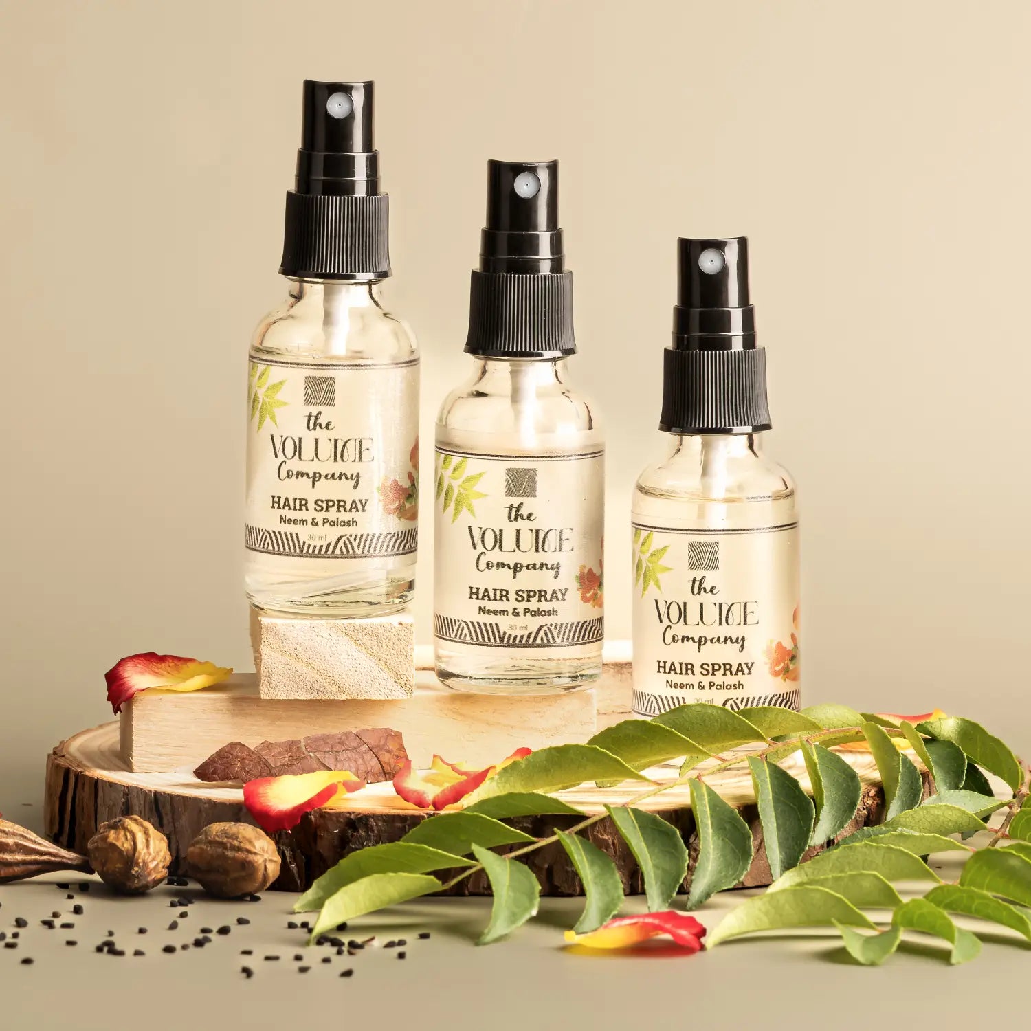 Neem: Hair Spray Renowned for its antibacterial and antifungal properties, Neem controls scalp infections, ensuring a healthy and clean scalp environment.